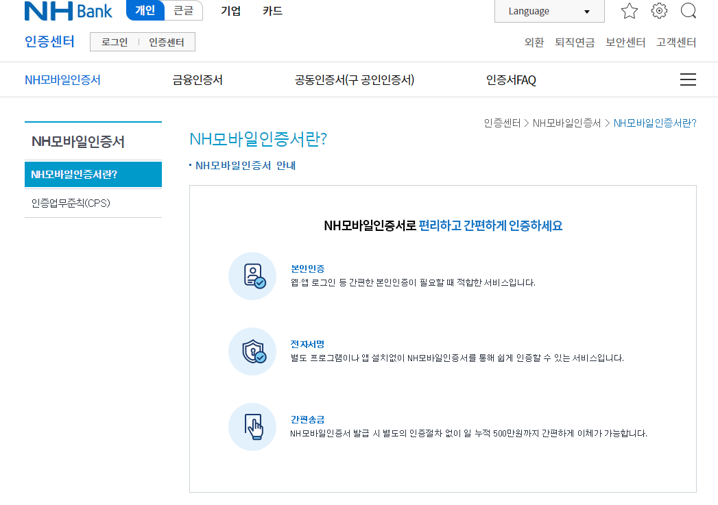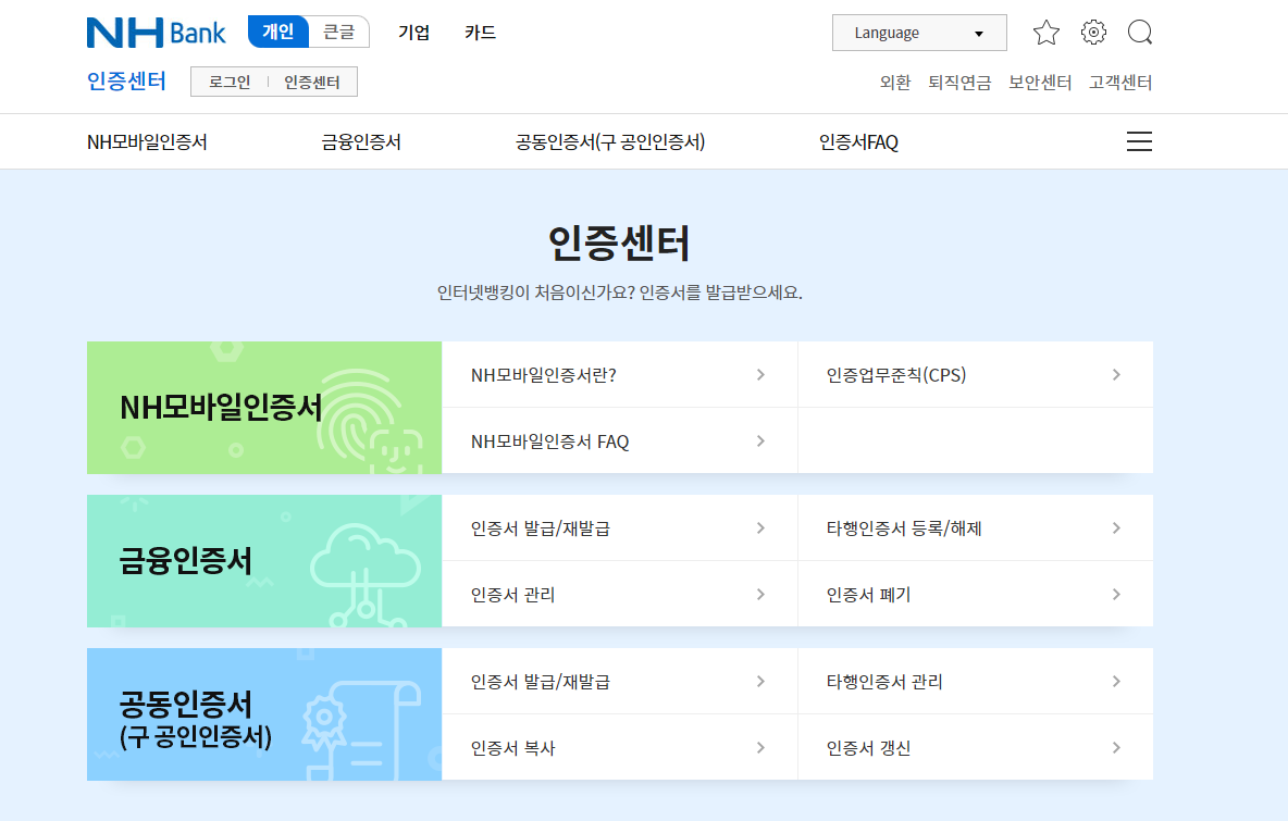 인증센터 > 공동인증서(구 공인인증서) (nonghyup.com)