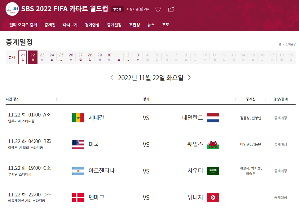 그래도 두 팀을 평가할 때는 네덜란드가 앞선다고 많이들 이야기 하는데요. 그렇게 결과가 나올까요? 아무튼 이번 세네갈 네덜란드 축구 경기 중계는 지상파 방송사를 통하여 TV 시청이 가능하구요.
