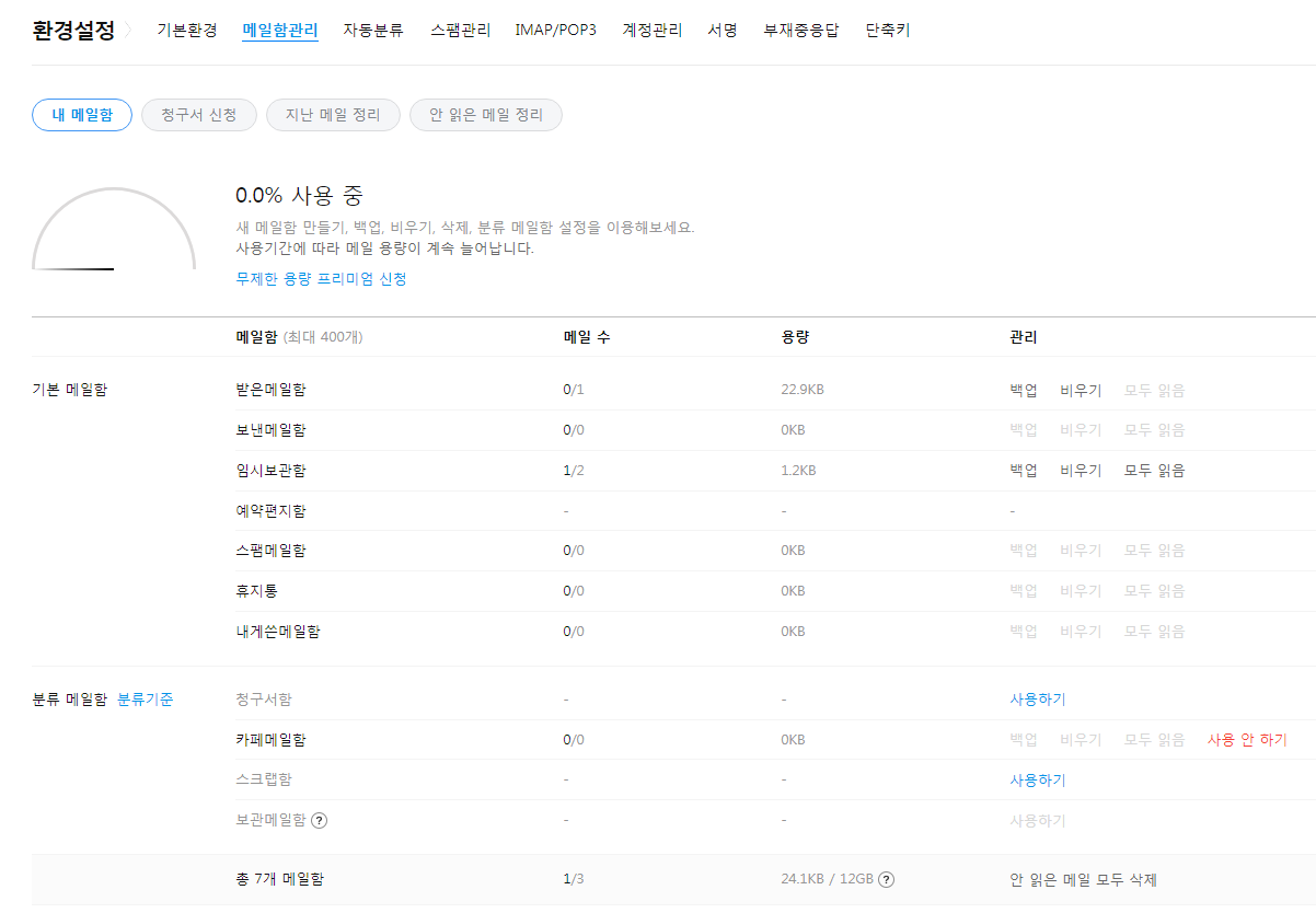 다양한 설정을 통하여 원하는 대로 활용이 가능한 한메일 이메일 서비스입니다.