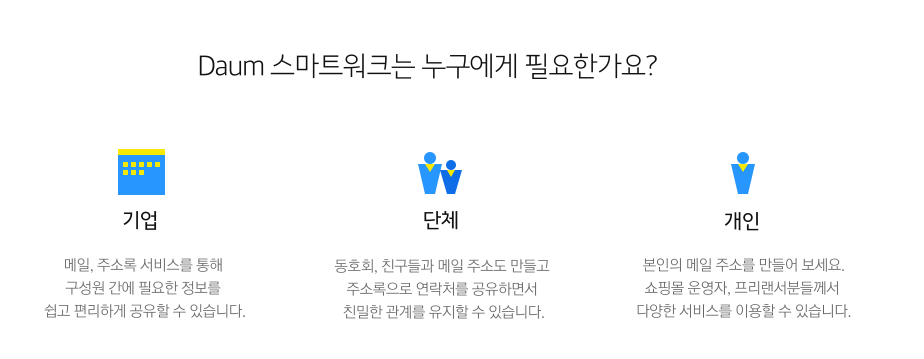 가입을 해주시면 언제 어디서나 메일 확인, 스마트워크 이용 가능 등을 보실 수가 있었습니다.