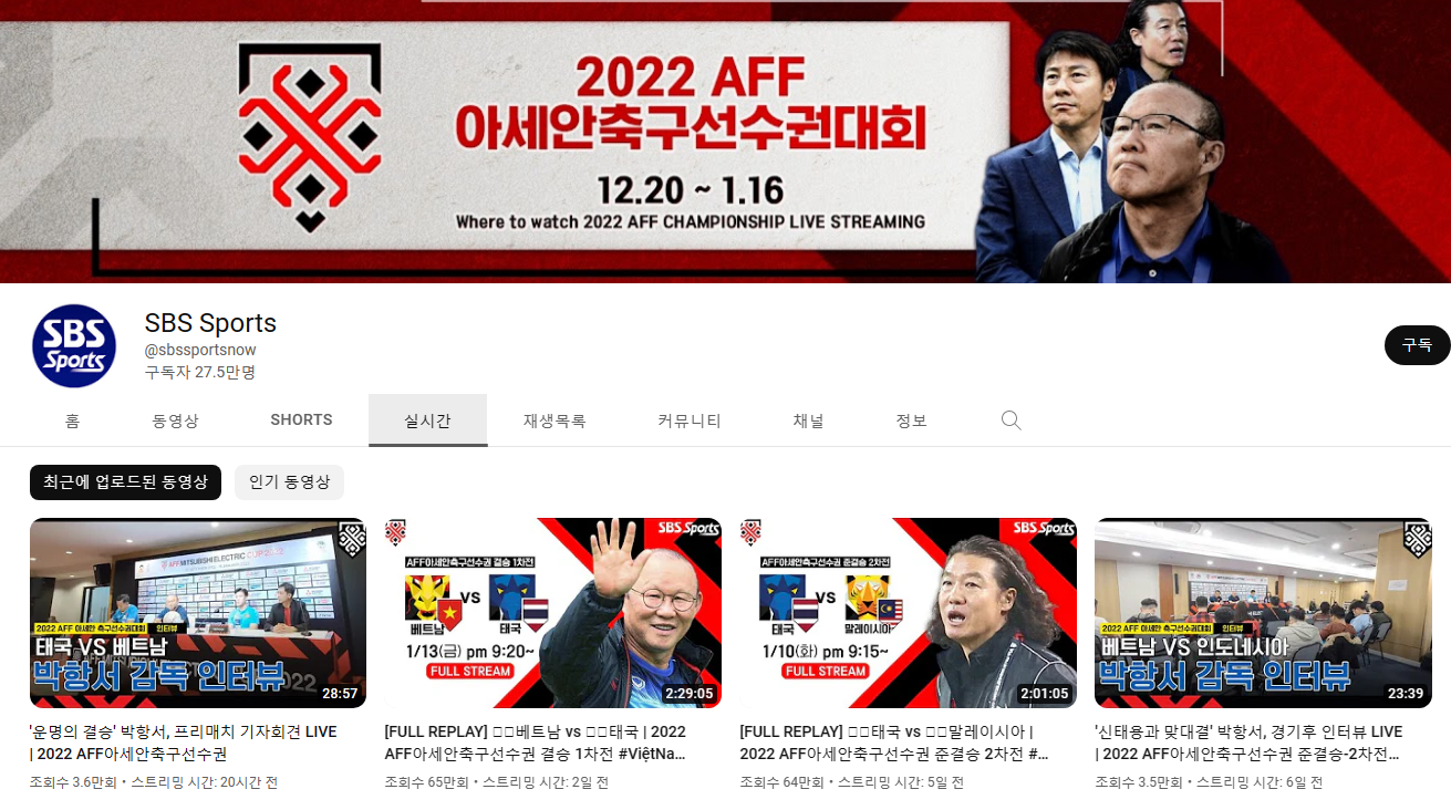 경기시청은 SBS Sports 축구 생중계보기로 하실 수 있습니다. 때문에 라이브로 한국에서도 시청을 하시면 됩니다.