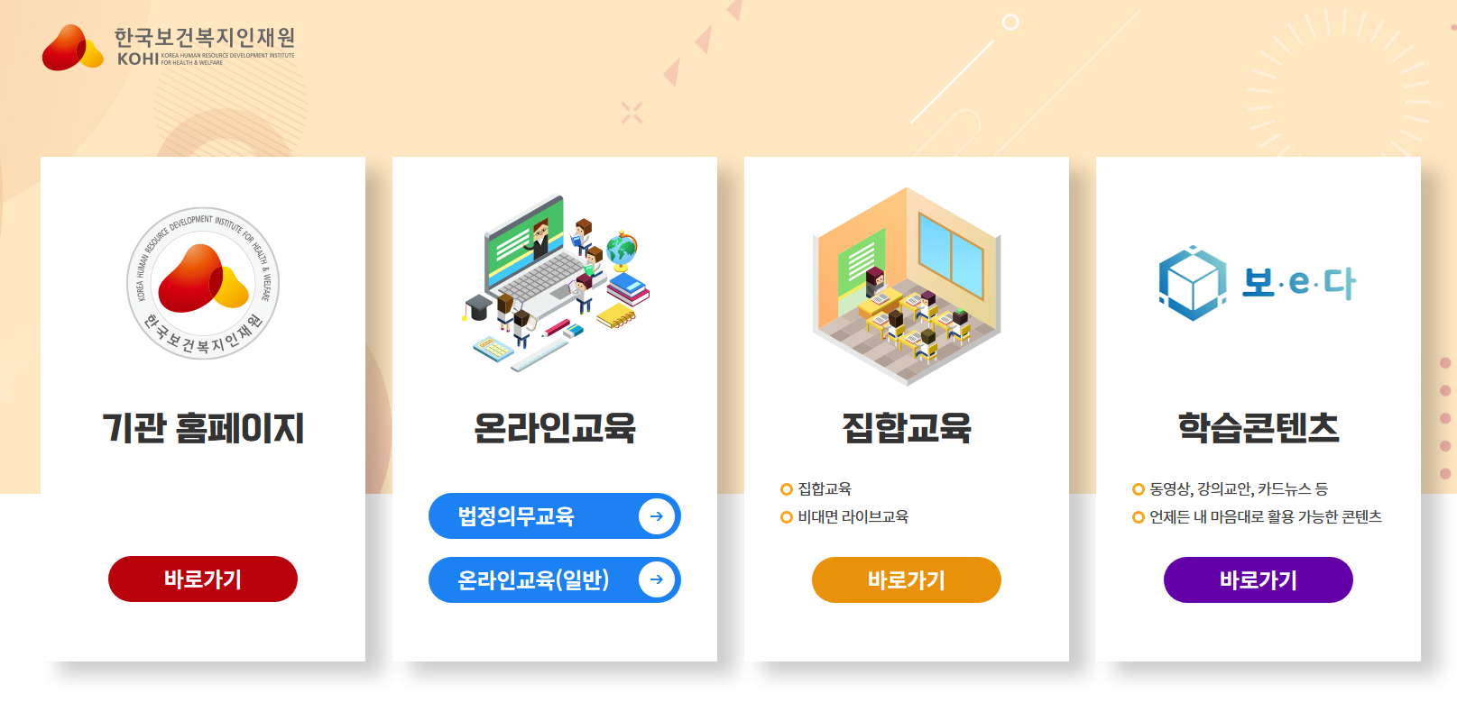 한국보건복지인력개발원 사이버교육센터는 한국 교육 시스템의 중요한 부분이다. 이 센터는 보건복지 분야의 지식과 경험을 얻고자 하는 학생들을 위해 다양한 프로그램을 제공한다. 이 센터는 건강, 의료 보건, 사회 복지 및 인권에 대한 연구, 교육 및 인식을 개발하는 데 초점을 맞추고 있습니다. 보건의료경영, 간호훈련, 의료기술경영, 의료정보시스템, 공중보건교육, 사회복지서비스, 인적자원개발 등 다양한 과정을 제공하고 있다.