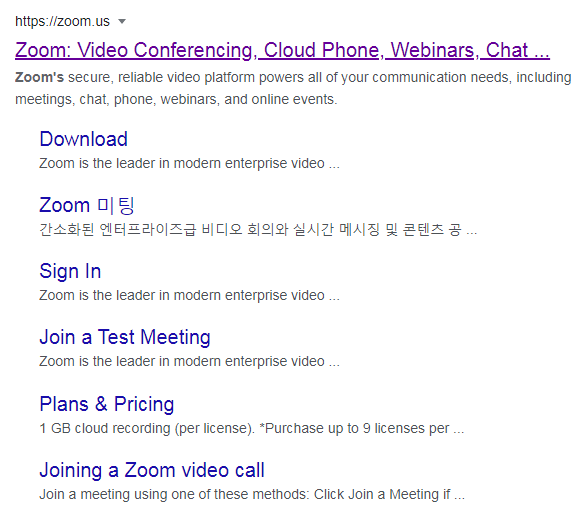 덕분에 받기 위하여 줌 홈페이지의 다운로드센터를 방문해주셔야 합니다. 검색을 통하시면 공식 zoom 사이트로 이동을 할 수 있습니다.