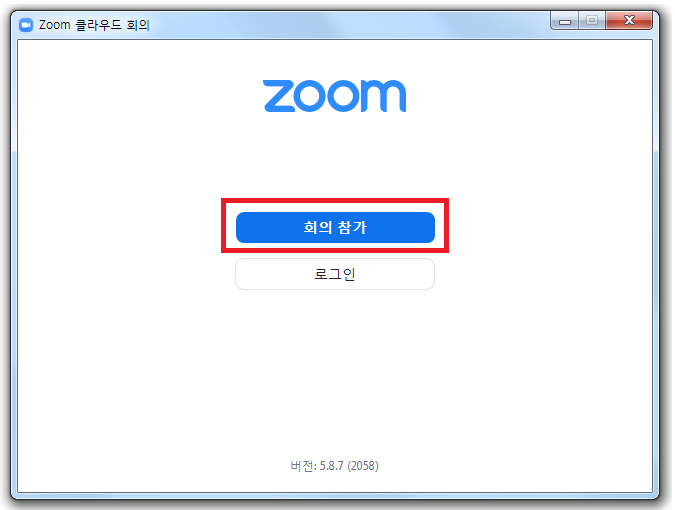줌 pc버전의 기본 화면에서는 회의 참가와 로그인이 가능합니다.