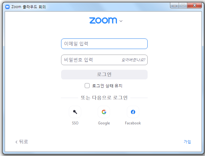 이외에 로그인은 줌의 회원가입이 되어진 계정으로 접속을 하는 방식입니다.