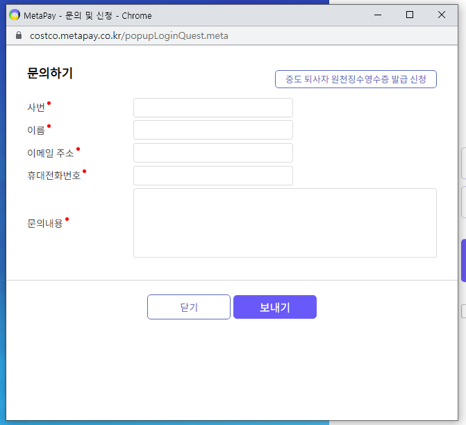 연말정산이 진행되고 있는가운데 코스트코는 메타페이 솔루션을 통하여 급여서비스를 지원받을 수 있습니다. 즉 코스트코 메타페이 전용페이지를 통하여 로그인을 하시면 급여조회 및 연말정산 서비스를 확인 가능합니다.
