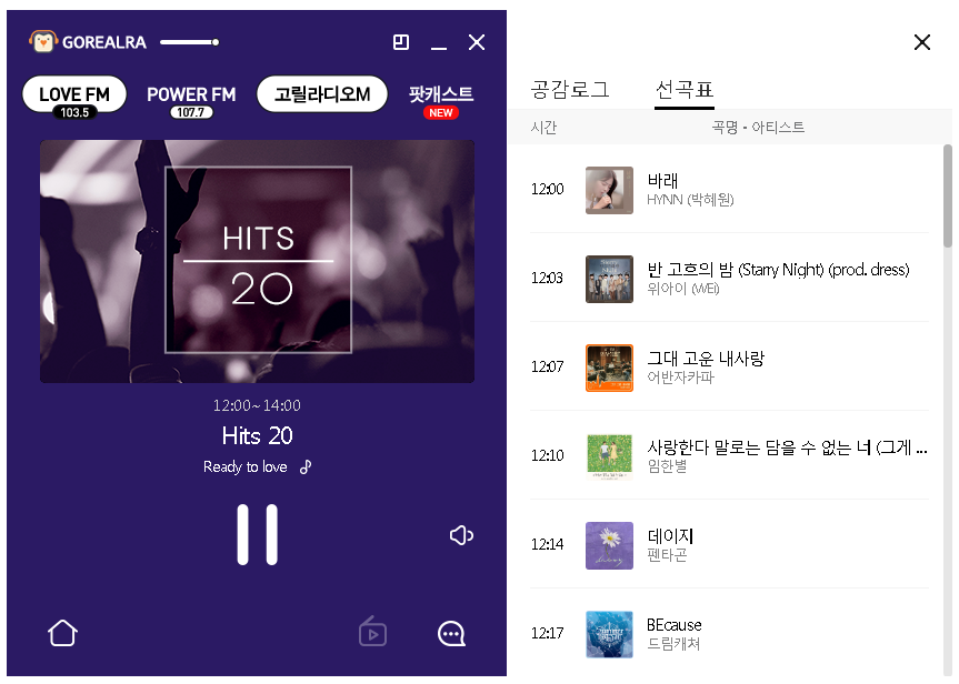 이용을 하실 때에는 보이는 라디오 이용도 쉬웠습니다. 더불어 공감로그와 선곡표 확인도 할 수 있어서 유용하였습니다.