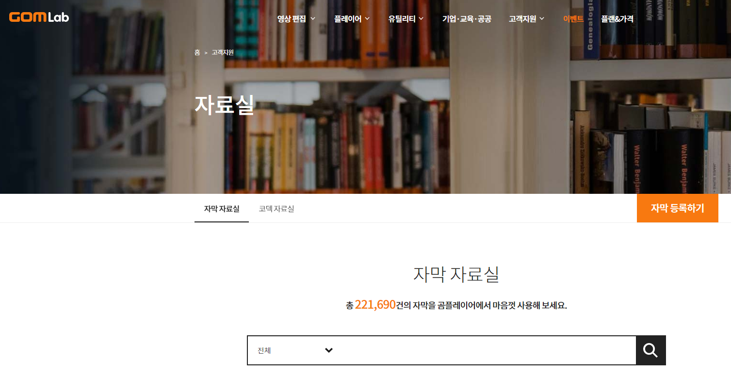 마지막으로 자막자료실과 코덱자료실은 프로그램을 받을 수 있는 곰랩에서 확인이 가능하니 참고하시고 이용해보시기 바랍니다. 그럼 플레이어 이용하여 미디어 재생 원활하게 마치세요.